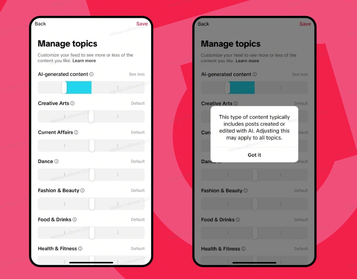 TikTok rolled out a Manage Topics tool that lets users reduce or remove AI content from their feed. The update includes AI labeling, watermarking and a $2M literacy fund.
