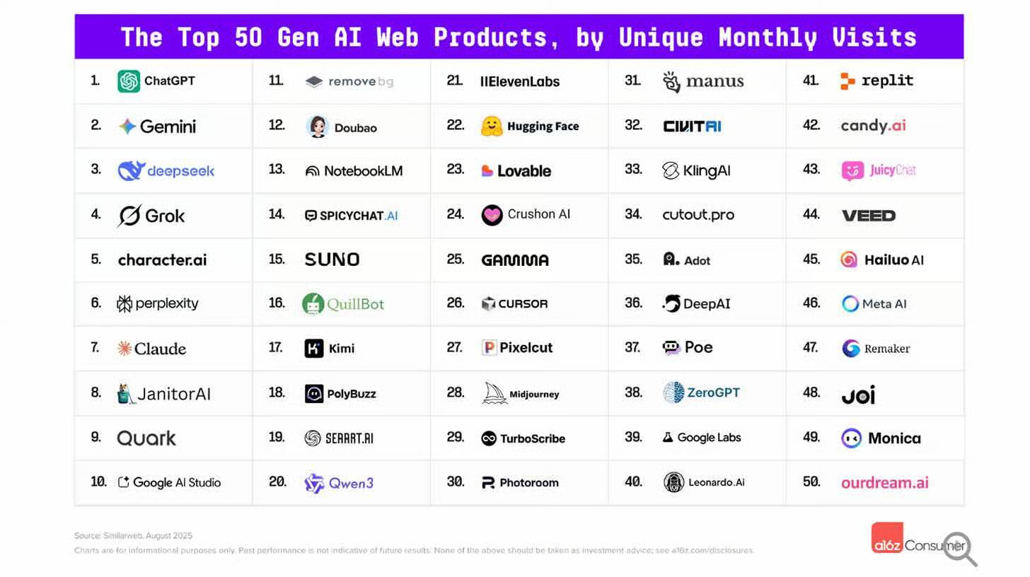 📊 A16z Consumer AI App Rankings Reveal Dramatic Market Shifts